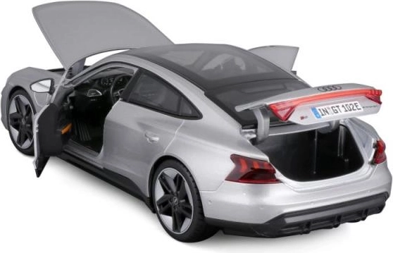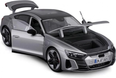 Zahvaljujoč trdnemu die-cast ohišju izstopa po vzdržljivosti in barvni obstojnosti. Dodelana notranjost, odpirajoča se vrata, pokrov motorja in prtljažnik (glede na različico) poudarjajo avtentičnost pravega vozila AUDI RS e-tron GT.