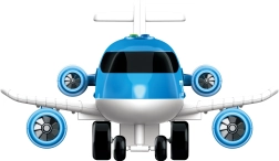 Odkrijte zabavo na tleh in v zraku. Veliko letalo z učinki je pripravljeno na akcijo – s pritiskom na štiri gumbe na nosu se aktivirajo svetlobni in zvočni učinki, ki okrepijo realističen občutek leta. Zahvaljujoč vztrajniku se letalo gladko zapelje po tleh, z odpirajočo se zadnjo rampo pa boste avtomobilčke zlahka naložili in razložili.