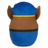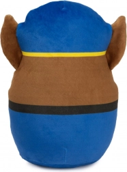 Plišasta igračka v obliki psa Chasea iz priljubljene serije Tačke na patrulji, oblečen v policijsko uniformo z značko in čepico.