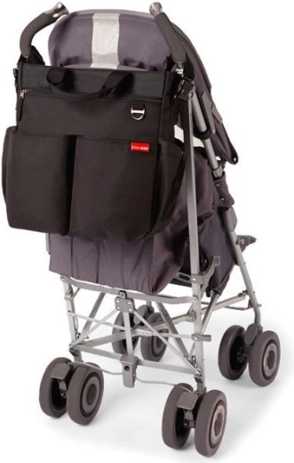 - Z zahvaljujoč patentiranim trakovom SKIP HOP jo je mogoče pritrditi na ročaj katerega koli modela vozička ali nositi na rami