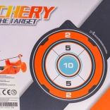 Samostrel je izdelan iz lahke in varne plastike, ki zagotavlja enostavno upravljanje in varnost otrok pri igri.
