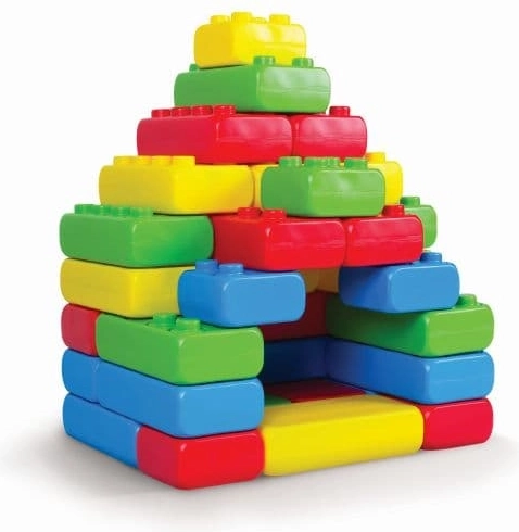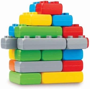 Gradbene opeke dimenzij 31 x 15 cm so prava norost! Otroci si lahko iz njih zgradijo igralno hišo ali avto za vožnjo. Set vsebuje 33 elementov, ki so zapakirani v veliko, trdno kartonsko škatlo. Opeke so izdelane iz za igro varne plastike, zato lahko otroci gradijo tudi zunaj. Gradnja iz tako velikih elementov je robustna in trpežna. Opeke so namenjene otrokom od 2. leta. Takšen set kock bo vedno primeren dar za dečke in deklice. Otroci imajo radi svoj prostor za igro, ki ga lahko delijo s prijateljem ali vrstnikom, gradbeni bloki pa jim omogočajo, da si tak prostor zgradijo sami. Ta set dodatno dopolnjujeta dve kolesi, ki jim omogočata, da si zgradijo lastno vozilo. Dvojno veselje iz enega seta gradbenih kock: malček najprej zgradi, nato pa svojo konstrukcijo uporabi pri nadaljnji igri. Barvitost kock pritegne zanimanje malih otrok že od začetka.