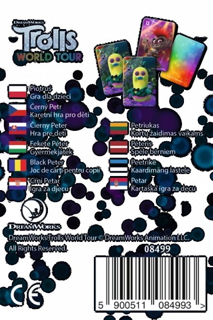 Tradicionalna igra Črni Peter v licencirani temi TROLLOVI razveseli otroke in odrasle. V pakiranju je 25 kart v priročni papirnati škatlici. Igra je enostavna za razlago, hitra za igranje in odlično razvija spretnost opažanja, zbranost in socialne veščine.