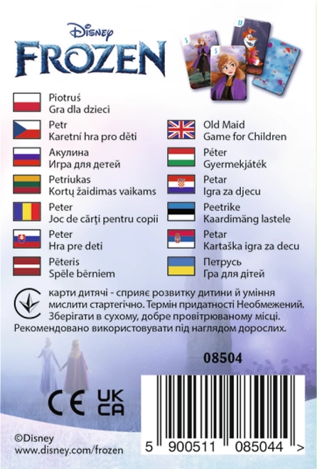 Priljubljena igra Črni Peter v licenci FROZEN bo razveselila vse oboževalce Ane, Else in Olafa. Igralci si razdelijo karte, tvorijo ujemajoče se pare in se poskušajo izogniti karti Črni Peter. Preprosta pravila obvladajo tudi mlajši otroci, ena partija pa traja le nekaj minut – idealno za na pot ali domače druženje.