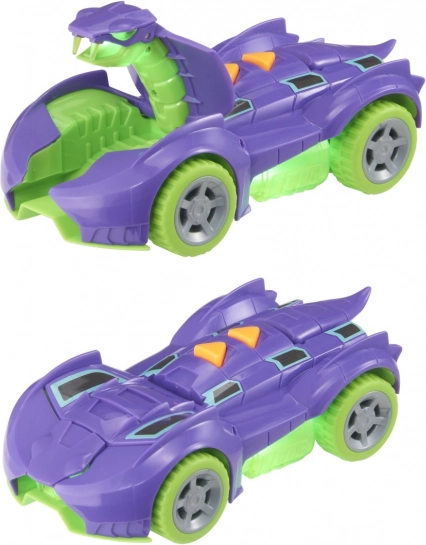 Ta monstruozni Teamsterz avto v kobra dizajnu ponuja vznemirljivo vožnjo z realističnim klikanjem čeljusti in dramatičnim utripanjem oči. Pošastni zvoki in zvoki motorja povečajo napetost, medtem ko prosto vrteča se kolesa zagotavljajo gladko vožnjo.