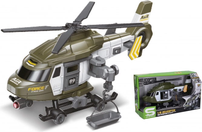 Pripravite se na akcijske dogodivščine s tem vojaškim helikopterjem. S pritiskom na gumb na krilu lahko uživate v neverjetnih svetlobnih in zvočnih učinkih, ki popestrijo vsako igro.