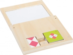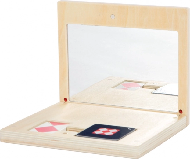 Ta fascinantna igra ponuja otrokom zabaven in interaktiven način, kako se naučiti prepoznavati in ustvarjati simetrične vzorce in oblike. Z namestitvijo lesenih ploščic pred ogledalo otroci ustvarijo oblike, ki skupaj tvorijo želeni vzorec po priloženih karticah.