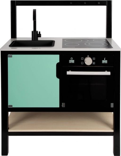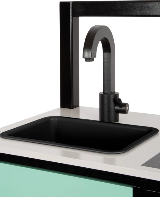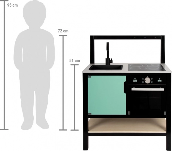 Ta vizualno privlačna otroška kuhinjica prinaša sodoben industrijski videz, ki izstopa v vsaki otroški sobi. Lahka, a stabilna konstrukcija s črnim okvirjem omogoča preprosto prestavljanje, zato lahko hitro menjate prostor igre. Realistični upravljalniki, ilustrirane naprave in funkcionalni elementi spodbujajo domišljijo in podpirajo samostojno igro.