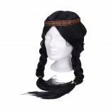 Stilska črna lasulja z vpletenimi kitami in naglavnim trakom je idealen dodatek za pust, maškarado ali tematske zabave. Ustvari avtentičen videz indijanskega kostuma in odlično drži obliko. Primerno za otroke od 6 let. Dodajte svoji preobleki realističen učinek in hitro preobrazbo brez truda.