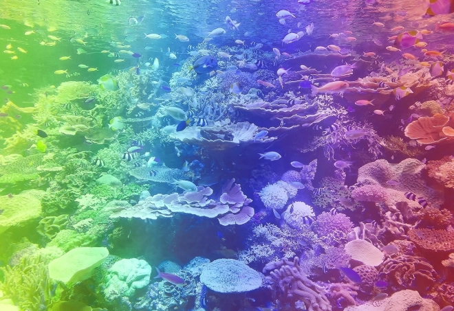 Sestavljajte po barvnem motivu koralnega grebena ali pa se lotite izziva sestavljanja po oblikah na zadnji strani z vzorcem.
