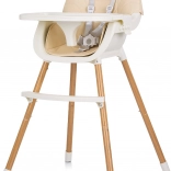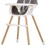 Praktičen in stilski jedilni stolček 2v1 za otroke, ki že samostojno sedijo, ki ga zlahka spremenite v visoki ali nizki stol. Ponuja udoben sedež z umeljivim usnjenim prevlekom, 5-točkovne varnostne pasove, premični pladenj v 3 položajih ter nedrseče nastavke na nogah za največjo stabilnost in varnost.