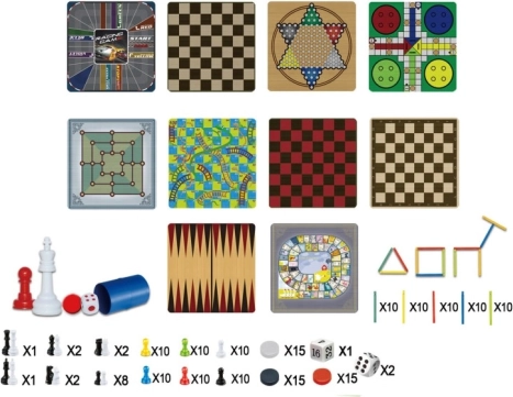 Komplet iger 100 v 1 je odlična izbira za domačo zabavo za otroke in odrasle. V embalaži boste našli 5 dvostranskih igralnih plošč, ki so praktično uporabne za številne igralne možnosti. Navodila so priložena, zato se lahko takoj potopite v igranje: