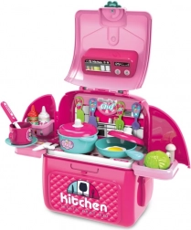 Kuhinjski set v nahrbtniku je idealna igrača za male gospodinje, ki uživajo v igri kuhanja in skrbi za gospodinjstvo. Razstavljiv nahrbtnik za kuhinjo omogoča otrokom pripravo hrane, kar spodbuja ustvarjalnost in motoriko.