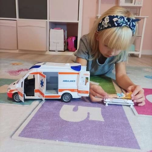 Ambulanta spodbuja razvoj domišljije, socialno igro ter učenje o delu reševalcev in osnovnih načelih prve pomoči. Zaradi kompaktnih mer je primerna za otroško sobo in za na pot, takoj po odprtju pa je pripravljena na akcijo – baterije AA so priložene.