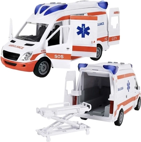 Ta plastična reševalna ambulanta zvesto posnema pravo reševalno vozilo – od potiska do funkcij. Otroke bodo navdušile tri tipke na strehi za aktivacijo luči in siren, medtem ko odpirajoča se sprednja, bočna in zadnja vrata omogočajo dostop do podrobne notranjosti. Priložena so zložljiva in izvlečna nosila, s katerimi je pacienta enostavno “naložiti” v vozilo.