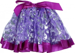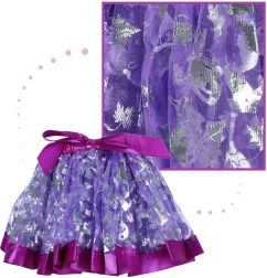 Vijolično krilce z bleščečimi srebrnimi vzorci in elastičnim pasom se zlahka prilagodi različnim postavam.