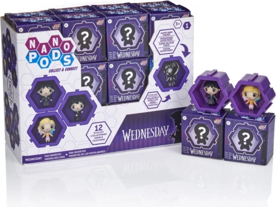 Odkrijte skrivnosti z našimi skrivnostnimi figuricami Nano Pods, navdihnjenimi s priljubljeno serijo Wednesday. Vsako pakiranje vsebuje naključno figurico iz serije dvanajstih možnih različic.