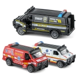Izberite med tremi izvirnimi različicami tega kovinskega avtomobilčka: policija, reševalci ali gasilci. Vsako vozilo se ponaša s podrobnim videzom in kakovostno kovinsko konstrukcijo. Avtomobilček se zahvaljujoč sistemu potega nazaj po vsakem spustu hitro vrne na štartno črto!