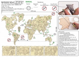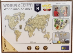 Odkrijte svet na igriv način. Leseni zemljevid z živalmi v merilu 1 : 57 mio je natančno lasersko izrezan iz brestove vezane plošče, zato izstopa s čistimi linijami in naravno strukturo lesa. Odličen je kot dekoracija in kot učni pripomoček – otroci si na zabaven način razširijo znanje o celinah, oceanih in živalih.