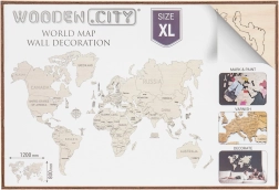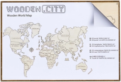 Ta leseni zemljevid sveta XL znamke WOODEN CITY je izdelan v EU iz kakovostne brestove vezane plošče in se ponaša z natančnim laserskim rezom. V paketu je vse potrebno za hitro in čisto montažo na steno – vključno z obojestranskim trakom in slikovnim navodilom. Velikodušni format 120 × 80 cm postane nespregledljiva dominanta prostora.