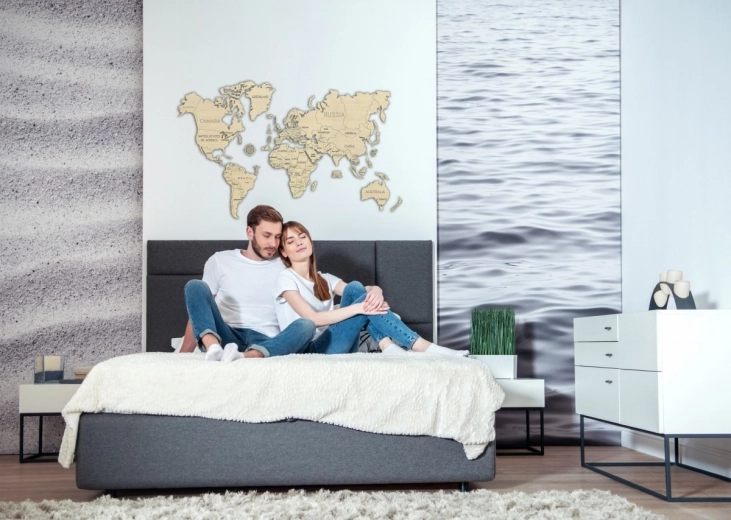 Zemljevid služi ne le kot elegantna dekoracija, temveč tudi kot interaktivni opomnik vaših potovanj. Obiskana mesta lahko obarvate ali v les zapičite buciko z zastavico. Zaradi enostavne zahtevnosti ga sestavite približno v eni uri – idealen projekt za prijeten večer doma.