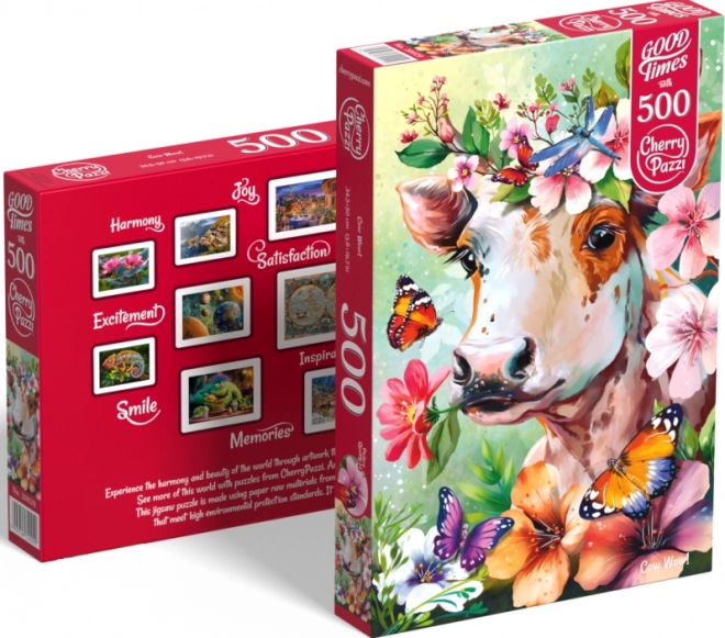Sestavljanka CHERRY PAZZI z motivom 'Ojoj, krava!' prinaša izkušnjo kreativnosti in zabave za vsakogar. S 500 kosi je idealna za srednje napredne sestavljavce, ki uživajo v procesu sestavljanja in končnem pogledu na celotno sliko.