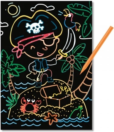 Praskanka Pirat znamke DODO je odličen način, kako otroke zaposliti za dolge ure. Pod črno plastjo se skriva barvita podlaga, ki jo odkrivajo s praskanjem. Ta aktivnost spodbuja potrpežljivost in razvoj ustvarjalnosti. S priloženim praskalnim pisalom lahko otroci ustvarijo živahne ilustracije, ki bodo navdušile vsakega malega umetnika.