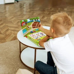 Magnetna igra Dodo Kmetija je odlična izbira za male raziskovalce. Otroci si sestavijo prizor s kmetije, nameščajo živalice in predmete na magnetno ploščo ter ustvarjajo svoje zgodbe. Tako naravno razvijajo jezikovne spretnosti, domišljijo in zbranost.