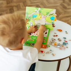 Ta magnetna igra je odlično darilo za otroke, ki želijo spoznavati živali na igriv način. Ustvarjajte prizore iz živalskega vrta, poimenujte živali in prepustite domišljiji prosto pot.
