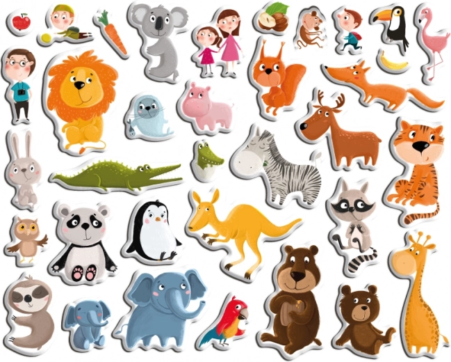 - 35 magnetnih elementov z živalmi iz živalskega vrta za neskončne kombinacije igralnih prizorov.