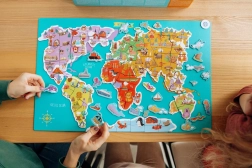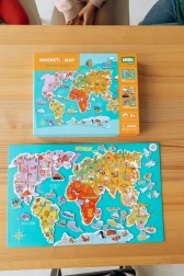 Odkrijte zabaven in izobraževalen način, kako otroke naučiti o svetu okoli nas. Magnetni zemljevid sveta vsebuje 145 delov, ki se enostavno pritrdijo na magnetno podlago in ustvarijo celovito sliko sveta.
