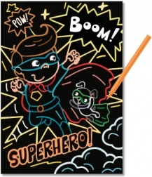 Praskanka DODO s superjunakom je idealna izbira za otroke, ki obožujejo ustvarjanje in barve. Dovolj je slediti vnaprej natisnjenim linijam in s praskalnim peresom postopoma razkrivati živahno podlago – rezultat je izvirna slika, ki razveseli tudi kot dekoracija.