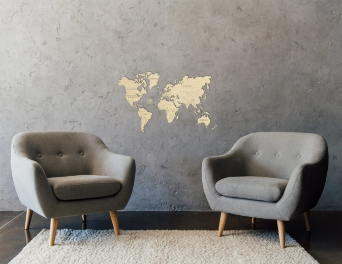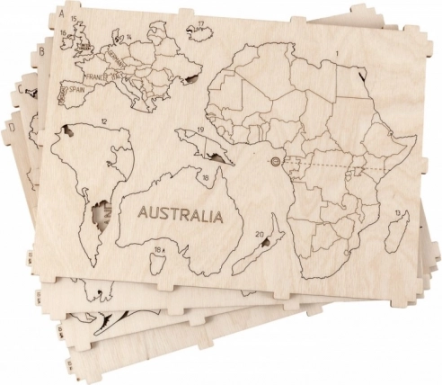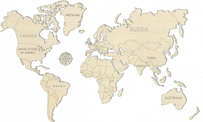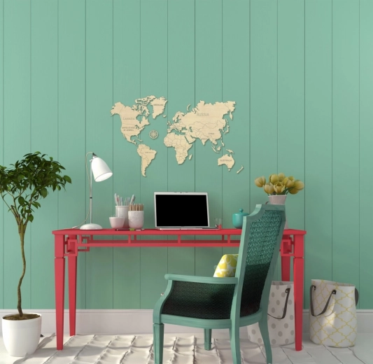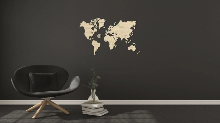 Odkrijte lepoto naravnega lesa in prenesite svoje poti na steno. Ta leseni zemljevid sveta je izdelan iz kakovostne brezove vezane plošče in zaradi preciznega laserskega izreza izstopa z čistimi linijami in čitljivimi napisi. Enostavno ga namestite z obojestranskim lepilnim trakom, ki je priložen v paketu.