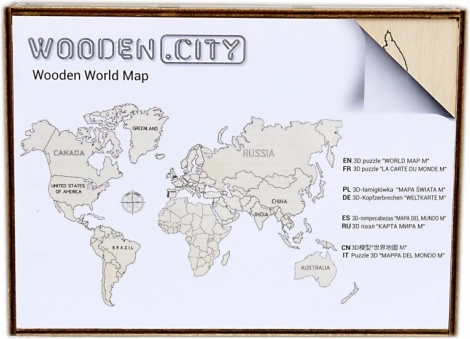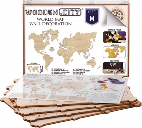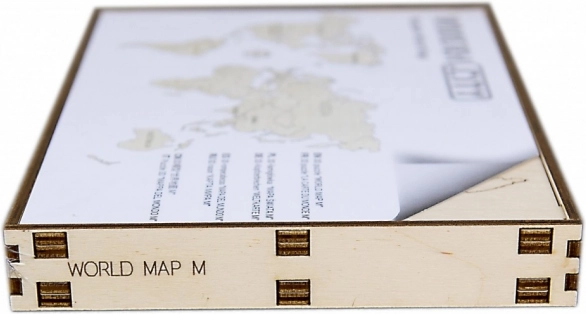 Stenski leseni zemljevid sveta velikosti M znamke WOODEN CITY je idealen kot dizajnerska dekoracija in izvirno darilo za ljubitelje potovanj. Iz kakovostne brezove vezane plošče, natančno izrezan z laserjem, se zlahka pritrdi z obojestranskim lepilnim trakom in spremeni vaš dom ali pisarno v svet spominov.