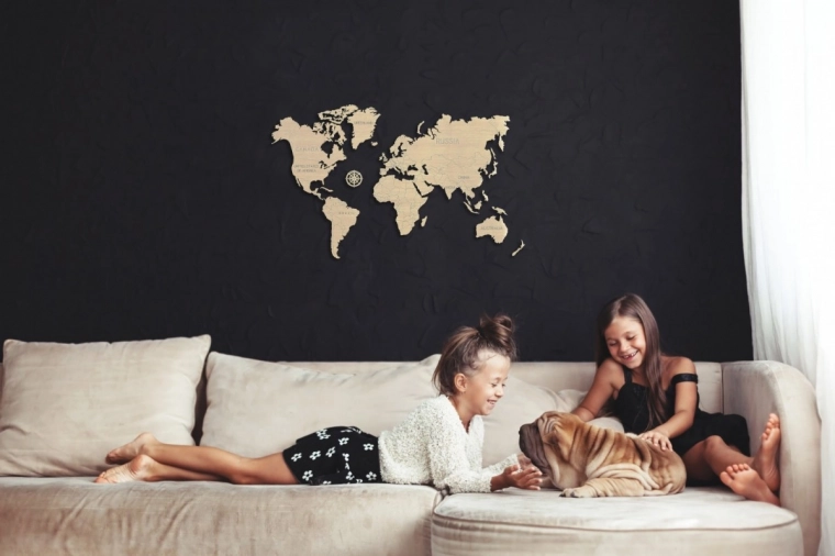 Zemljevid služi kot stilska stenska dekoracija in hkrati pomaga otrokom in odraslim pri boljši orientaciji v svetovni geografiji.