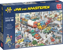 Odkrijte svet duhovitih ilustracij Jana van Haasterena – barvit, dinamičen in dodelan do zadnje podrobnosti. Motiv Prometni kaos je nabit z gegi, preobrnjenimi situacijami in presenečenji, ki vas bodo nasmejala ob vsakem novem pogledu. S 3000 kosi je odlična izzivalna sestavljanka za izkušenejše sestavljavce ali kot družinski projekt.