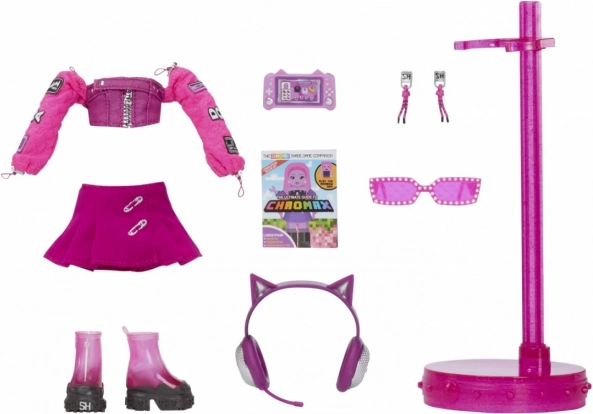 Del lutke so različni modni dodatki, vključno z roza sončnimi očali, slušalkami z ušesi in roza stojalom, ki spodbujajo kreativno igro in omogočajo ustvarjanje edinstvenih modnih videzov.