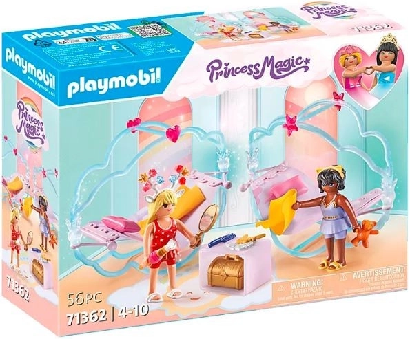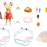 Uživajte v pustolovščinah z mavričnimi princesami na nebeški pižama zabavi PLAYMOBIL. Preden se dve mavrični princesi uležeta v čarobne viseče postelje, ju okrasita z bleščečimi nakitnimi kosi, nato pa odpotujeta v svet sanj in domišljije s pravljičnimi liki in čarobnim okoljem.