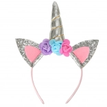 Ta naglavni trak vsakega otroka spremeni v magičnega samoroga zahvaljujoč elegantnemu srebrnemu rogu in dekorativnim cvetovom.