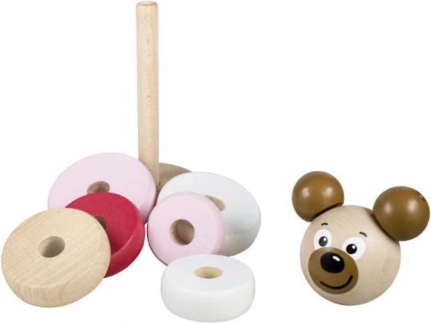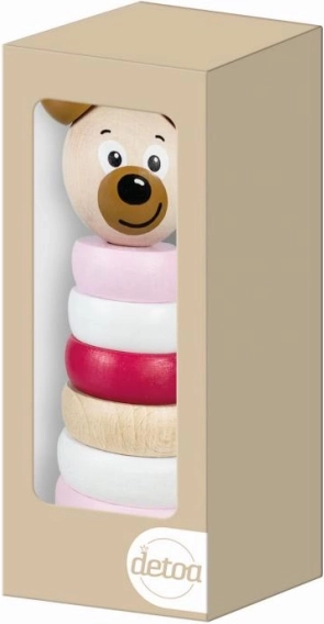 Lesena piramida z medvedjo glavico v pastelnih barvah je več kot le igrača — je pripomoček za razvoj otrok. Izdelana je iz masivnega lesa, kar zagotavlja njeno vzdržljivost in dolgo življenjsko dobo. Sestavljena je iz osmih delov, ki otroke učijo prepoznavanja barv in oblik. Ima ergonomsko zasnovo z okroglimi oblikami in zaobljenimi robovi, prilagojena je majhnim otroškim rokam in spodbuja tip.