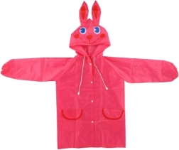 Dežni plašček z zajčjim dizajnom, skupaj s kapuco, ki ima ušesa in obraz.