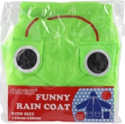 Dežni plašč ima vesel žabji dizajn z velikimi očmi na kapuci, ki je odlična zabava za vsakogar.