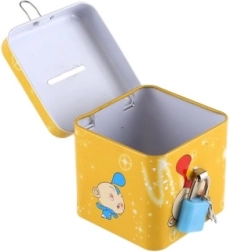 Ta model otroške kovinske hranilnice je zasnovan tako, da je preprost in hkrati praktičen. Zaradi svoje varne konstrukcije in privlačnega videza z risanimi liki je popoln dodatek za vsakega otroka.