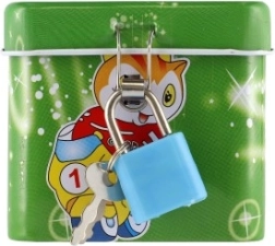 Odlično za otroke, ki se učijo varčevati; hranilnica ima trdno ključavnico, ki zagotavlja, da kovanci ostanejo tam, kjer morajo biti. Na voljo v štirih različnih barvah, ponuja nekaj za vsakega otroka.