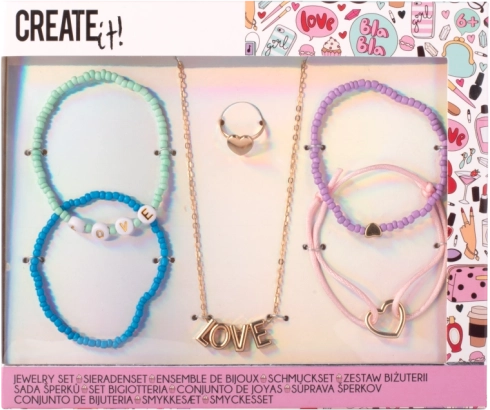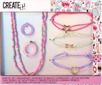 Ta kreativni set nakita CREATE IT! prinaša zabavo in stil v vsakdan. Pastelne kroglice, prikupni obeski in nežne barve se lepo ujemajo z oblačili za zabave in za običajno nošenje. Otroci si zlahka dopolnijo opravo in vadijo svoj okus ter domišljijo.