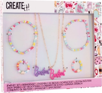 Popestrite opravo male modne navdušenke z igrivim setom nakita CREATE IT!. V pakiranju najdete zapestnice, uhančke in ogrlico iz barvnih kroglic in obeskov – idealno za vsakodnevno nošenje in darila. Varna plastična izdelava ter pastelne barve bodo razveselile vsako ljubiteljico sloga.
