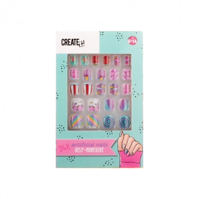 Umetni samolepilni nohti Candy z 2 različnima dizajnoma. Hitra aplikacija brez lepila, takojšen salonski učinek in udobno nošenje za vsak dan.