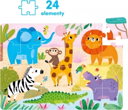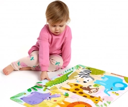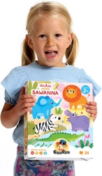 Doživite zabavo z velikimi in lepo ilustriranimi sestavljankami, ki prikazujejo priljubljene živali iz afriške savane. Sestavljanke ne pripravijo le otrok na čudovito dogodivščino, temveč so tudi odlično izobraževalno darilo. Otroci se iz sestavljank učijo o oblikah, barvah, razvijajo svojo domišljijo in se učijo koncentracije. Sestavljanke pomagajo pri sprostitvi in učijo potrpežljivosti.