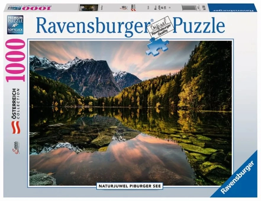 Potopite se v svet sestavljank s premium sestavljankami Ravensburger in ustvarite čudovito podobo mirnega jezera Piburger. Antirefleksna površina z laneno strukturo zagotavlja žive barve brez motečih bleščanj ter udobno sestavljanje tudi pri umetni osvetlitvi.
