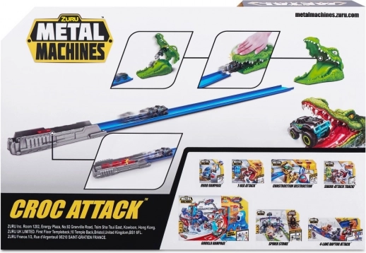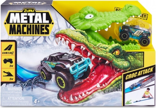 Zuru Metal Machines Krokodilji napad je dirkalna steza, ki vas potegne v svet akcijske zabave. Podajte se naproti nevarnemu krokodilu, ki preži na vaš Monster Truck. Dosezite dovolj veliko hitrost, da varno premagate krokodilje čeljusti.